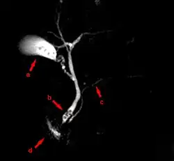 - ↑ Prasad, SR; D. Sahani; S. Saini (November 2001). "Clinical applications of magnetic resonance cholangiopancreatography". Journal of Clinical Gastroenterology. 33 (5): 362–6. doi:10.1097/00004836-200111000-00004. PMID 11606850. S2CID 28902645.