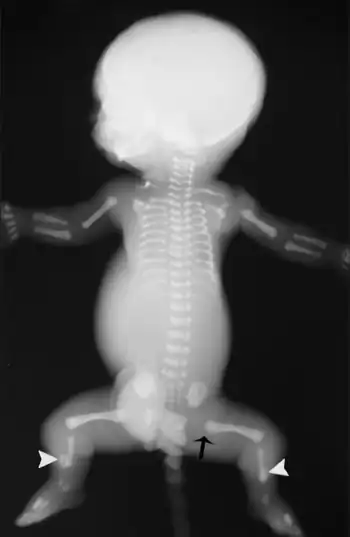 Majewski's polydactyly syndrome, also known as polydactyly with neonatal chondrodystrophy type I, short rib-polydactyly syndrome type II, and shorts rib-polydactyly syndrome, is a lethal form of neonatal dwarfism characterized by osteochondrodysplasia (skeletal abnormalities in the development of bone and cartilage) with a narrow thorax, polysyndactyly, disproportionately short tibiae, thorax dysplasia, hypoplastic lungs and respiratory insufficiency. Associated anomalies include protruding abdomen, brachydactyly, peculiar faces, hypoplastic epiglottis, cardiovascular defects, renal cysts, and also genital anomalies. Death occurs before or at birth.