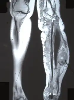 - ↑ 5.0 5.1 Panigrahi S, Mishra SS, Das S, Dhir MK (August 2013). "Primary malignant peripheral nerve sheath tumor at unusual location". Journal of Neurosciences in Rural Practice. 4 (Suppl 1): S83 – S86. doi:10.4103/0976-3147.116480. PMC 3808069. PMID 24174807.