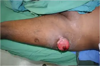 {{cite journal}}: CS1 maint: unflagged free DOI (link) - ↑ Neville H, Corpron C, Blakely ML, Andrassy R (March 2003). "Pediatric neurofibrosarcoma". Journal of Pediatric Surgery. 38 (3): 343–6, discussion 343–6. doi:10.1053/jpsu.2003.50105. PMID 12632346.