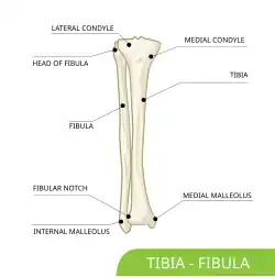 There are two malleolar sulci, medial and lateral.[2] The medial malleolar sulcus is the posto-inferior groove just lateral to the medial malleolus on the distal part of the tibia.[5] It is where the tendons of the tibialis posterior and flexor digitorum longus course on their way to their insertions on the foot. The lateral malleolar sulcus is the posto-inferior groove on the distal part of the fibula.[5] The tendons of the peroneus longus and peroneus brevis course behind it on the way to their insertions on the foot.[5]