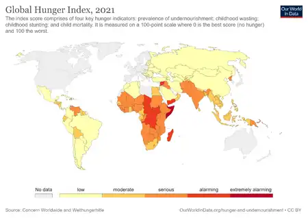 - ↑ "Prevalence of undernourishment (% of population) | Data". data.worldbank.org. Archived from the original on 2022-03-27. Retrieved 2022-03-27.