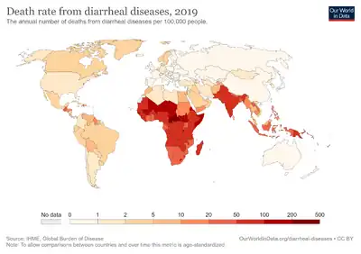 - ↑ 1.00 1.01 1.02 1.03 1.04 1.05 1.06 1.07 1.08 1.09 1.10 1.11 1.12 1.13 1.14 1.15 1.16 1.17 1.18 1.19 The Treatment Of Diarrhea, A manual for physicians and other senior health workers Archived 2011-10-19 at the Wayback Machine, World Health Organization, 2005. See “4.2 Treatment Plan A: home therapy to prevent dehydration and malnutrition,” “4.3 Treatment Plan B: oral rehydration therapy for children with some dehydration,” and “4.4 Treatment Plan C: for patients with severe dehydration” on pages 8 to 16 (12 -20 in PDF). See also “8. MANAGEMENT OF DIARRHOEA WITH SEVERE MALNUTRITION” on pages 22-24 (26-30 in PDF) and “ANNEX 2: ORAL AND INTRAVENOUS REHYDRATION SOLUTIONS” on pages 33-37 (37-41 in PDF).