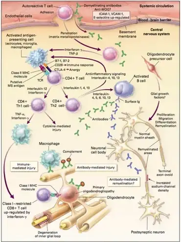 - ↑ Diaz-Olavarrieta C, Cummings JL, Velazquez J, et al. (1999). "Neuropsychiatric manifestations of multiple sclerosis". The Journal of Neuropsychiatry and Clinical Neurosciences. 11 (1): 51–7. doi:10.1176/jnp.11.1.51. PMID 9990556.