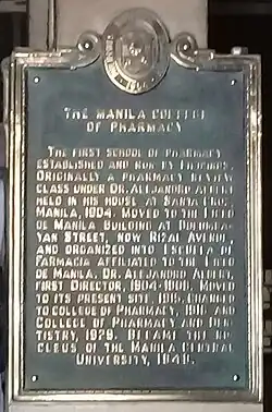 The review class developed into the Escuela de Farmacia del Liceo de Manila in 1904, with Albert as the founder and director. Later on, due to the steady increase in enrollment, it was transformed into the Manila College of Pharmacy, with Leon Maria Guerrero, Antonio Llamas, Feliciano Paterno and Filemon Tanchoco Sr. as the incorporators. It was the first educational institution of its kind established and managed by Filipinos. Its initial organization was barely four years after the establishment of the Philippine education system.
