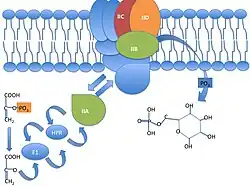 - ↑ Postma, P. W.; Lengeler, J. W.; Jacobson, G. R. (1993). "Phosphoenolpyruvate:carbohydrate phosphotransferase systems of bacteria". Microbiological Reviews. 57 (3): 543–594. doi:10.1128/MMBR.57.3.543-594.1993. PMC 372926. PMID 8246840.