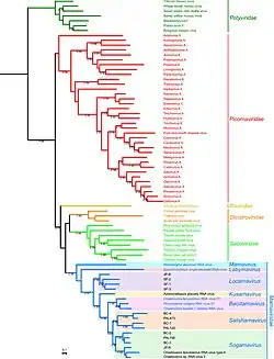 10. 1 2 3 4 5 6 Vlok M, Lang AS, Suttle CA (July 2019). "Application of a sequence-based taxonomic classification method to uncultured and unclassified marine single-stranded RNA viruses in the order Picornavirales". Virus Evolution. 5 (2) vez056. doi:10.1093/ve/vez056. PMC 6938265. PMID 31908848.