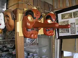 The North American Iroquois tribes used masks for healing purposes (see False Face Society). In the Himalayas, masks functioned above all as mediators of supernatural forces.[12][13][14] Yup'ik masks could be small 3-inch (7.6 cm) finger masks, but also 10-kilogram (22 lb) masks hung from the ceiling or carried by several people.[15][16] Masks have been created with plastic surgery for mutilated soldiers.[17]