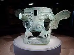 In China, masks are thought to have originated in ancient religious ceremonies. Images of people wearing masks have been found in rock paintings along the Yangtze. Later mask forms brings together myths and symbols from shamanism and Buddhism.[35]