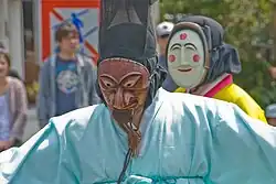 Many of the masks and characters used in European festivals belong to the contrasting categories of the 'good', or 'idealised beauty', set against the 'ugly' or 'beastly' and grotesque. This is particularly true of the Germanic and Central European festivals. Another common type is the Fool, sometimes considered to be the synthesis of the two contrasting types, Handsome and Ugly.[39] Masks also tend to be associated with New Year and Carnival festivals.