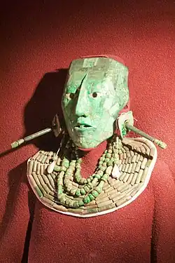 Distinctive styles of masks began to emerge in pre-Hispanic America about 1200 BC, although there is evidence of far older mask forms. In the Andes, masks were used to dress the faces of the dead. These were originally made of fabric, but later burial masks were sometimes made of beaten copper or gold, and occasionally of clay.