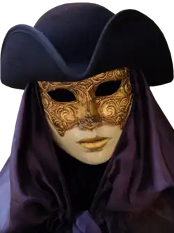 Another tradition of European masks developed, more self-consciously, from court and civic events, or entertainments managed by guilds and co-fraternities. These grew out of the earlier revels and had become evident by the 15th century in places such as Rome and Venice, where they developed as entertainments to enliven towns and cities. Thus the Maundy Thursday carnival in St. Marks Square in Venice, attended by the Doge and aristocracy, also involved the guilds, including a guild of maskmakers.[41] There is evidence of 'commedia dell'arte'-inspired Venetian masks and by the late 16th century the Venetian Carnival began to reach its peak and eventually lasted a whole 'season' from January until Lent. By the 18th century, it was already a tourist attraction, Goethe saying that he was ugly enough not to need a mask. The carnival was repressed during the Napoleonic Republic, although in the 1980s its costumes and the masks aping the 18th century heyday were revived.[42] It appears other cities in central Europe were influenced by the Venetian model.