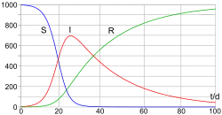 In 1927, W. O. Kermack and A. G. McKendrick created a model in which they considered a fixed population with only three compartments: susceptible, S(t); infected, I(t); and recovered, R(t). The compartments used for this model consist of three classes:[26]