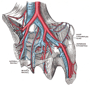 Because of its similarities to Deep Vein Thrombosis (DVT), May-Thurner’s syndrome is rarely diagnosed amongst the general population. In this condition, the right iliac artery sequesters and compresses the left common iliac vein against the lumbar section of the spine,[5] resulting in swelling of the legs and ankles, pain, tingling, and/or numbness in the legs and feet.[6] The pain is often presented as dull, and may progress up and down the leg depending on the patient. Lower extremities may feel warm to the touch and swelling may maintain or dissipate throughout the day.[7]
