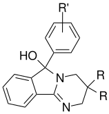 - ↑ Aeberli P, Eden P, Gogerty JH, Houlihan WJ, Penberthy C (February 1975). "5-aryl-2,3-dihydro-5H-imidazo[2,1-a]isoindol-5-ols. A novel class of anorectic agents". Journal of Medicinal Chemistry. 18 (2): 177–82. doi:10.1021/jm00236a014. PMID 804553.