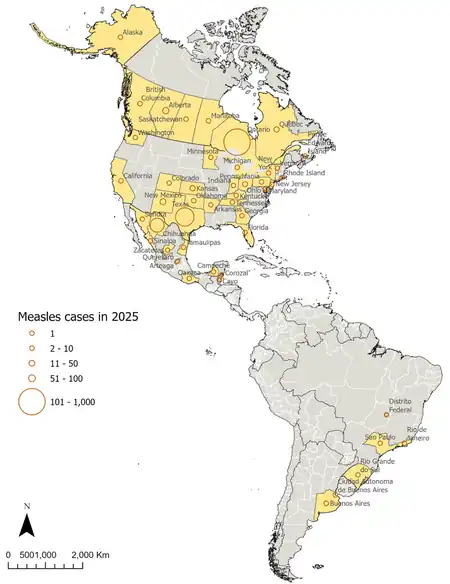 181. "PAHO calls for regional action as the Americas lose measles elimination status - PAHO/WHO | Pan American Health Organization". www.paho.org. 10 November 2025. Retrieved 11 November 2025.