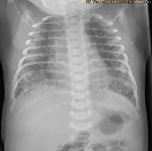 | Differential diagnosis | Transient tachypnea of the newborn, sepsis, congenital heart disease, pneumonia, pneumothorax[3] |