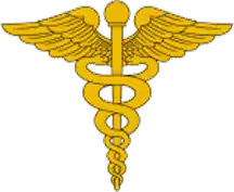![]() The U.S. Army Medical Corps Branch Plaque, erroneously invoking the caduceus as a symbol of medicine. | |