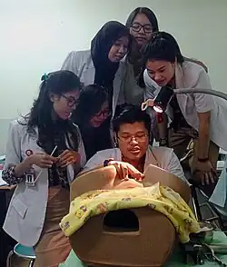 The standard Indonesian medical school curriculum is six years long. The four years long undergraduate program is composed mainly of classroom education, continued with the last two years in professional program which primarily includes rotations in clinical settings where students learn patient care firsthand. If they pass the undergraduate program, they will be granted the title "S.Ked" (Bachelor of Medicine) and if they finish the professional program and pass the national examination arranged by IDI (Indonesian Medical Association) they will become general physician and be assigned the prefix, "dr. (doctor)".