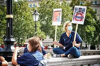 Nurses protesting at the Nurses' Protest at Trafalgar Square, UK on Saturday 12 September 2020