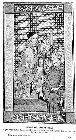 - ↑ "Miniature: Henri de Mondeville - Chirurgie de maitre Henri de Mondeville, chirurgien de Philippe le Bel, roi de France, composée de 1306 à 1320; traduction française... par E. Nicaise". Banque d'images et de portraits - Bibliothèques d'Université de Paris (in French). University of Paris. 2017. Retrieved 18 June 2021.