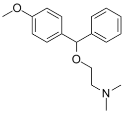 - ↑ US 2668856, Morren H, "P-methoxy benzhydryl ethers", issued 1954, assigned to UCB SA.
