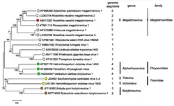 - ↑ Sato, Y; Miyazaki, N; Kanematsu, S; Xie, J; Ghabrial, SA; Hillman, BI; Suzuki, N; ICTV Report, Consortium (September 2019). "ICTV Virus Taxonomy Profile: Megabirnaviridae". The Journal of General Virology. 100 (9): 1269–1270. doi:10.1099/jgv.0.001297. PMID 31418675.