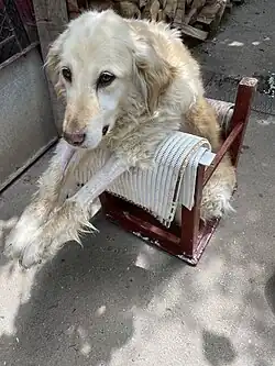 Myasthenia gravis occurs when acetylcholine receptors (nicotinic acetylcholine receptors) fail to function properly, so that the muscle is not stimulated to contract. There is an invention known as the "bailey chair" that uses the force of gravity to push down liquids and food into the dog's stomach. Usually dogs are known to understand when it is time to eat in their bailey chair, and this helps prevent issues. Bailey chairs can be made and are sold.[4] Also, a simple chair turned upside down can be successfully used for this purpose.