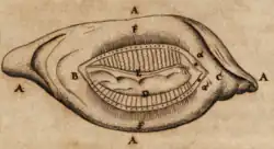 The glands were mentioned by Galen in 200 AD[3] and were described in more detail by Heinrich Meibom (1638–1700), a German physician, in his work De Vasis Palpebrarum Novis Epistola in 1666. This work included a drawing with the basic characteristics of the glands.[4][5]