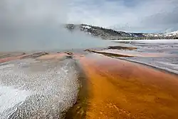 Meiothermus is a genus of Deinococcota bacteria.[1] [2] Members of Meiothermus can be reliably distinguished from other genera in the family Thermaceae as well as all other bacteria by the presence of three conserved signature indels (CSIs) found in the proteins: 5-methyltetrahydrofolate–homocysteine methyltransferase, cadmium transporter and polynucleotide phosphorylase and are exclusively shared by species of this genus.[3] Meiothermus is also different than the Thermus genus, which it was originally a member of, in their optimum growth temperatures, with Meiothermus being able to grow in colder environments. Meiothermus was first isolated with Thermus in alkaline and neutral hot springs in Kamchatka, Russia and Yellowstone National Park, USA.