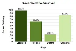 | Prognosis | Five-year survival rates in US 99% (localized), 25% (disseminated)[4] |