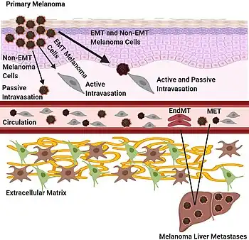 - ↑ Bae JM, Choi YY, Kim DS, Lee JH, Jang HS, Lee JH, et al. (January 2015). "Metastatic melanomas of unknown primary show better prognosis than those of known primary: a systematic review and meta-analysis of observational studies". Journal of the American Academy of Dermatology. 72 (1): 59–70. doi:10.1016/j.jaad.2014.09.029. PMID 25440435.