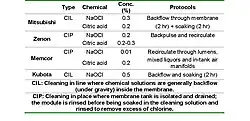 Intensive cleaning may also be carried out when further filtration cannot be sustained because of an elevated transmembrane pressure. Each of the four membrane bioreactor suppliers Kubota, Evoqua, Mitsubishi and GE Water have their own chemical cleaning recipes; these differ mainly in terms of concentration and methods (see Table 1). Under normal conditions, the prevalent cleaning agents are NaOCl (sodium hypochlorite) and citric acid. It is common for membrane bioreactor suppliers to adapt specific protocols for chemical cleanings (i.e. chemical concentrations and cleaning frequencies) for individual facilities.[9]