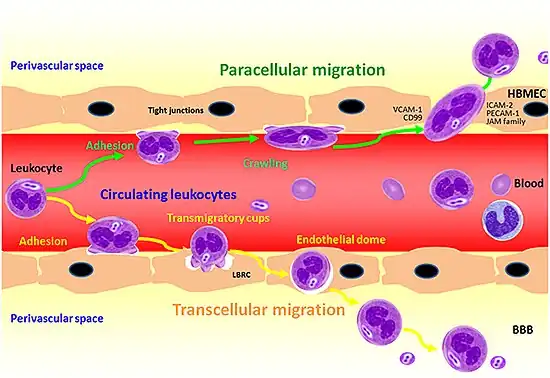 Transendothelial migration of PMN across BMEC in response to meningitic infections caused by bacteria[40]