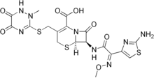 Structural formula of ceftriaxone, one of the third-generation cefalosporin antibiotics recommended for the initial treatment of bacterial meningitis.