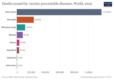 55. 55.0 55.1 Peltola H (April 2000). "Worldwide Haemophilus influenzae type b disease at the beginning of the 21st century: global analysis of the disease burden 25 years after the use of the polysaccharide vaccine and a decade after the advent of conjugates". Clinical Microbiology Reviews. 13 (2): 302–17. doi:10.1128/CMR.13.2.302-317.2000. PMC 100154. PMID 10756001.