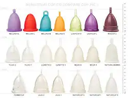 - ↑ Hearn A (24 February 2016). "Menstrual Cup Comparison Chart (Metric)". Put A Cup In It. Archived from the original on 11 March 2024. Retrieved 10 March 2024.