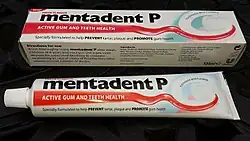 Mentadent is a brand name for a line of dental products manufactured by Unilever for its home and international markets excluding the United States and Canada where the company sold its rights to the brand to Church & Dwight Company in 2003.[1][2]