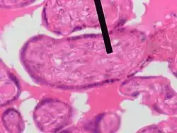 Mesenchyme (pointer) stained with H&E