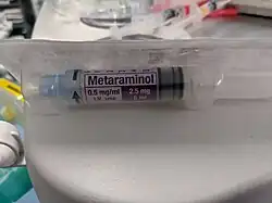 - ↑ "Metaraminol 0.5 mg/ml, Solution for Injection in pre-filled syringe - Summary of Product Characteristics (SmPC) - (emc)". www.medicines.org.uk. Retrieved 19 October 2022.