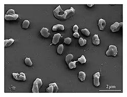 Methanohalophilus mahii (also known as Mhp. mahii) is an obligately anaerobic,[1] methylotrophic,[2] methanogenic[1] cocci-shaped[2] archaeon of the genus Methanohalophilus[2] that can be found in high salinity aquatic environments.[1] The name Methanohalophilus is said to be derived from methanum meaning "methane" in Latin; halo meaning "salt" in Greek; and mahii meaning "of Mah" in Latin, after R.A. Mah, who did substantial amounts of research on aerobic and methanogenic microbes.[2] The proper word in ancient Greek for "salt" is however hals (ἅλς).[3] The specific strain type was designated SLP (= ATCC 35705) and is currently the only identified strain of this species.[2]