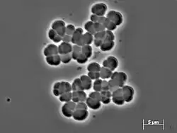 | Phase-contrast photo of Methanosarcina barkeri, type strain MST | |