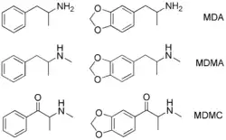 Right: MDA, MDMA, and methylone.
