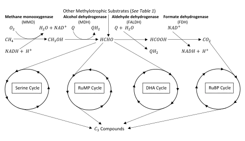 - 1 2 3 4 5 6 J Colby; H Dalton; Whittenbury, and R. (1979). "Biological and Biochemical Aspects of Microbial Growth on C1 Compounds". Annual Review of Microbiology. 33 (1): 481–517. doi:10.1146/annurev.mi.33.100179.002405. PMID 386931.