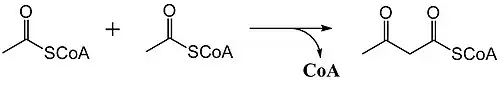 | Acetoacetyl-CoA thiolase | ![]() | Acetyl-CoA (citric acid cycle) undergoes condensation with another acetyl-CoA molecule to form acetoacetyl-CoA |