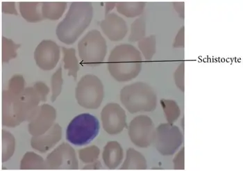 - ↑ Schapkaitz, Elise; Mezgebe, Michael Halefom (1 March 2017). "The Clinical Significance of Schistocytes: A Prospective Evaluation of the International Council for Standardization in Hematology Schistocyte Guidelines". Turkish Journal of Hematology. 34 (1): 59–63. doi:10.4274/tjh.2016.0359. PMC 5451690. PMID 27795225.