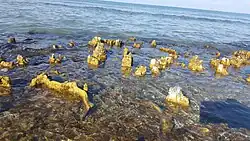 Microbialites are the foundation of many lacustrine ecosystems, such as the biosystem of the Great Salt Lake with its millions of migratory birds[4] or, serving in the Alchichica Lake as nurseries for axolotl (Ambystoma taylori) and a variety of fish.