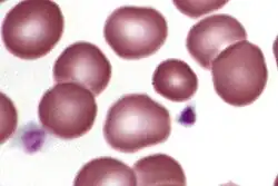 A microcyte is an abnormally sized red blood cell. By definition, it is 5 micrometers or smaller in diameter with a mean corpuscular value less than 80fL. It is often associated with several forms of anemia.[1] Microcytes are associated with the most common cause of anemia in children and adults. Many causes of microcytes can be seen at birth; however, some variations are acquired. The most common cause of microcytes is iron availability and/or iron metabolism.[2]