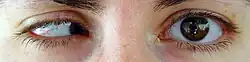 Microphthalmia (Greek: μικρός, mikros, 'small', ὀφθαλμός, ophthalmos, 'eye'), also referred as microphthalmos, is a developmental disorder of the eye in which one (unilateral microphthalmia) or both (bilateral microphthalmia) eyes are abnormally small and have anatomic malformations. Microphthalmia is a distinct condition from anophthalmia and nanophthalmia. Although sometimes referred to as 'simple microphthalmia', nanophthalmia is a condition in which the size of the eye is small but no anatomical alterations are present.[2][3]