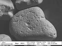 - ↑ Ries, Gunnar (2005-10-31), Schlagmarken auf einem Sandkorn elektronenmikrokopische Aufnahme, retrieved 2022-05-27